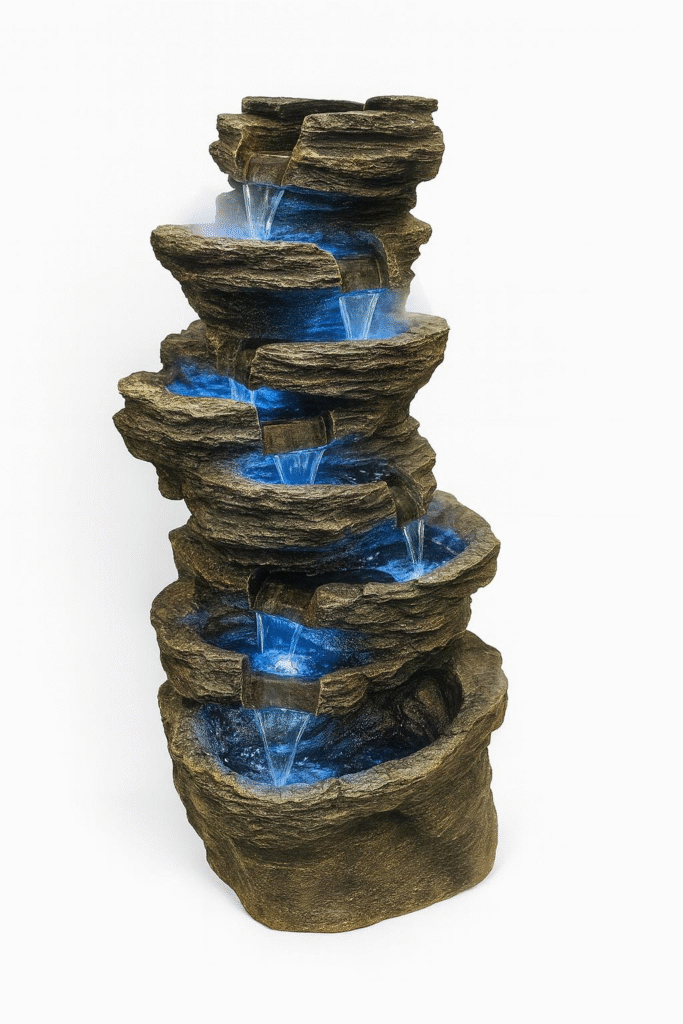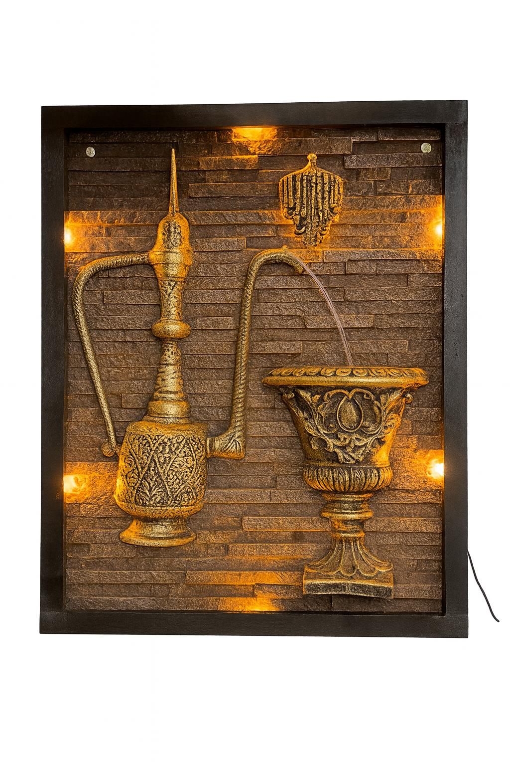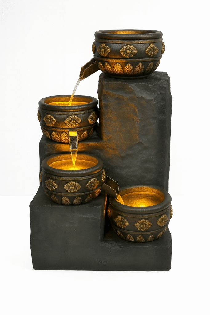 Bring timeless elegance and soothing charm to your space with the Golden Heritage Wall Fountain with LED Backlight. Crafted with exquisite detailing, this fountain showcases a classic jug-and-basin design in a rich golden finish, symbolizing heritage and refinement. The textured stone-like background enhances the antique look, while the integrated warm LED lights create a cozy, inviting glow that transforms any room into a relaxing haven.